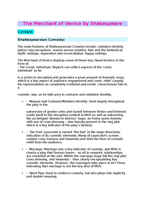 Download Merchant of Venice Notes Shakespeare Workshop Reader